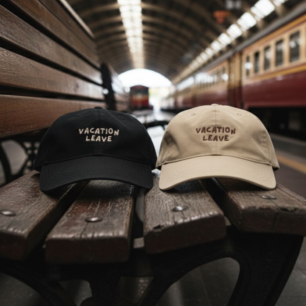 A classic cotton cap made for everyday wear. Crafted from 100% soft cotton for all-day comfort, featuring embroidery details Vacation Leave on the front and do not disturb on the back expressing the quiet, easygoing mood of a true getaway. Perfect for travel or simply slowing down on your day off.